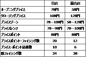 - 競合店は自店より58‐128円とプライスゾーンが広い