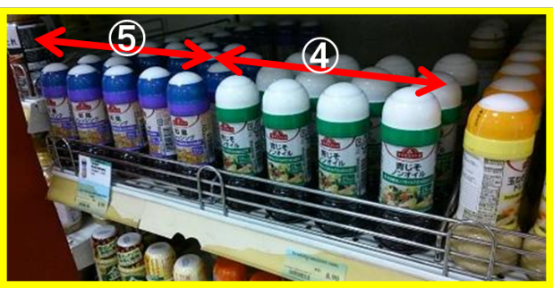 フェイシング数: 陳列台に横に並べた商品のフェイスの数。